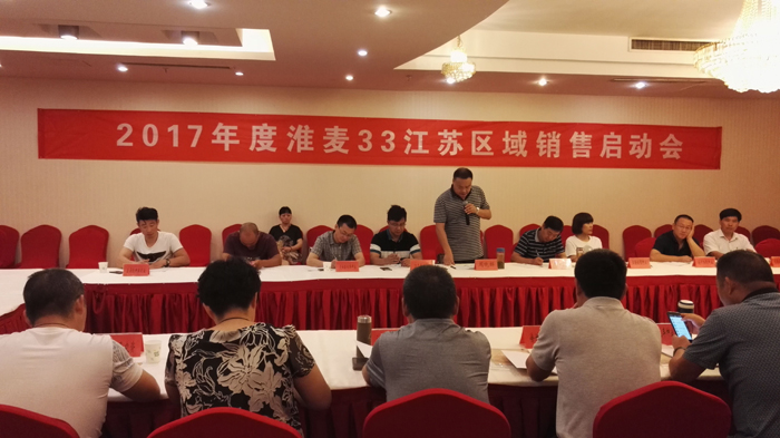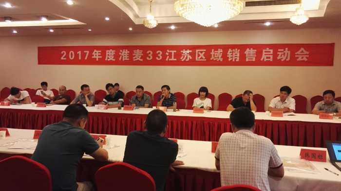 7月8日-9日,2017年度淮麥33江蘇銷售啟動會在江蘇沭陽順利召開。本次會議由蘇北片區(qū)各縣代理商參加,會議議題包括市場形勢分析、銷售政策、市場管控、二維碼技術(shù)培訓(xùn)、經(jīng)銷商研討等,會議由常規(guī)稻麥部副部長韓國標(biāo)主持。