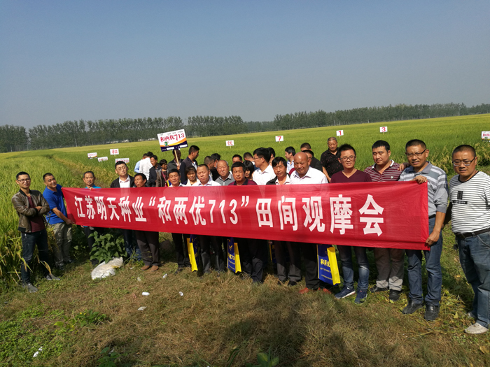 2017年9月28日和兩優(yōu)713江蘇北片現(xiàn)場觀摩會在宿遷市成功召開。來自宿遷、徐州、睢寧、泗陽、邳州、沭陽、泗洪等縣代理商及鄉(xiāng)鎮(zhèn)經(jīng)銷商對江蘇明天種業(yè)2017年隆重推出的雙國審雜交水稻新品種“和兩優(yōu)713”進(jìn)行現(xiàn)場觀摩。