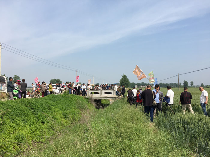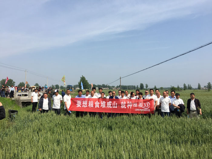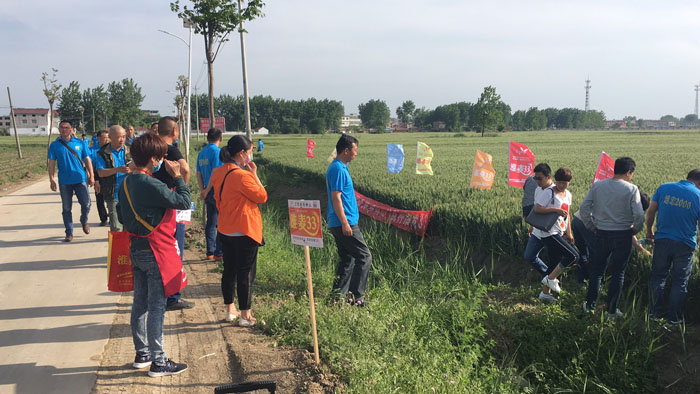 2018年5月9日,靈璧縣金大地農(nóng)業(yè)科技有限公司、泗縣幫農(nóng)種業(yè)有限公司分別在上午和下午召開(kāi)了淮麥33觀摩會(huì)。今年的天氣比較特殊,前期倒春寒使得小麥?zhǔn)軆鲚^為嚴(yán)重,再加上后期頻繁的雨水,導(dǎo)致赤霉病在短期內(nèi)大范圍爆發(fā),部分小麥品種紛紛“中招”,讓農(nóng)戶遭受嚴(yán)重?fù)p失。而淮麥33自2014年推向市場(chǎng)以來(lái),憑借其優(yōu)異的綜合抗性,經(jīng)受住了不同年份惡劣天氣的考驗(yàn),“他”的表現(xiàn)一直是那么的棒,“他”的抗性一直是那么好。今年的淮麥33表現(xiàn)依舊優(yōu)秀,受到靈璧、泗縣兩地零售商朋友的一致好評(píng)。