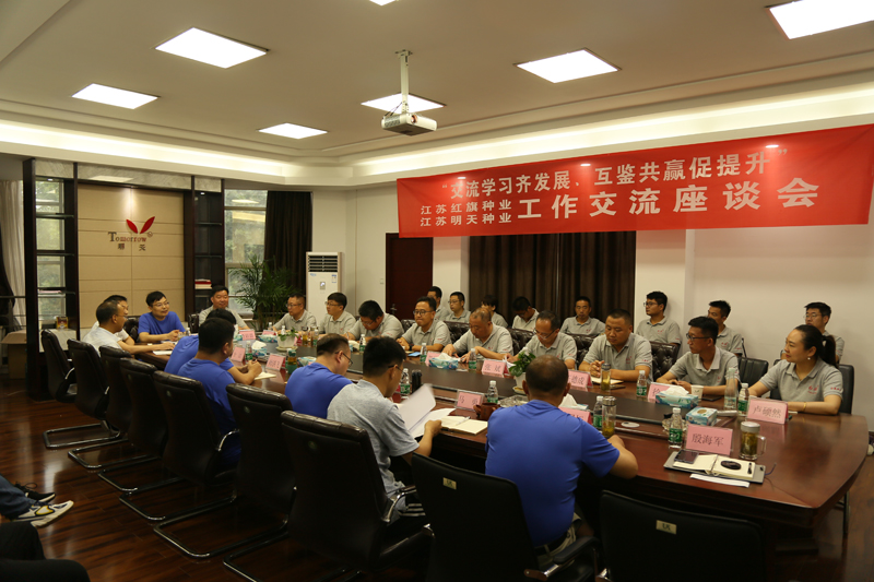 首先,明天種業(yè)總經(jīng)理嚴(yán)輝民對(duì)紅旗種業(yè)查總一行的到來(lái),表示熱烈歡迎。嚴(yán)總表示,明天種業(yè)作為江蘇省主要農(nóng)作物種子產(chǎn)業(yè)技術(shù)創(chuàng)新戰(zhàn)略聯(lián)盟理事長(zhǎng)單位,應(yīng)充分發(fā)揮聯(lián)盟優(yōu)勢(shì),加強(qiáng)與紅旗種業(yè)等兄弟單位的交流合作,共謀發(fā)展。紅旗種業(yè)、明天種業(yè)具有各自的資源優(yōu)勢(shì)和發(fā)展特點(diǎn),雙方在互鑒共贏方面,將來(lái)可以尋求更多的切入點(diǎn)開展交流、合作,為江蘇種業(yè)協(xié)同發(fā)展、江蘇糧食安全保障工作,共同提供強(qiáng)有力的支撐。隨后,雙方相關(guān)人員進(jìn)行了詳盡的專題匯報(bào)、座談和交流。查總在對(duì)座談會(huì)總結(jié)時(shí)表示,雙方將各自成功的經(jīng)驗(yàn),毫無(wú)保留的做了分享,這是對(duì)此次會(huì)議“交流學(xué)習(xí)齊發(fā)展、互鑒共贏促提升”主題的深刻理解,成效明顯。以后要將這種交流機(jī)制常態(tài)化,尋求機(jī)會(huì)、通力合作、互助共贏。